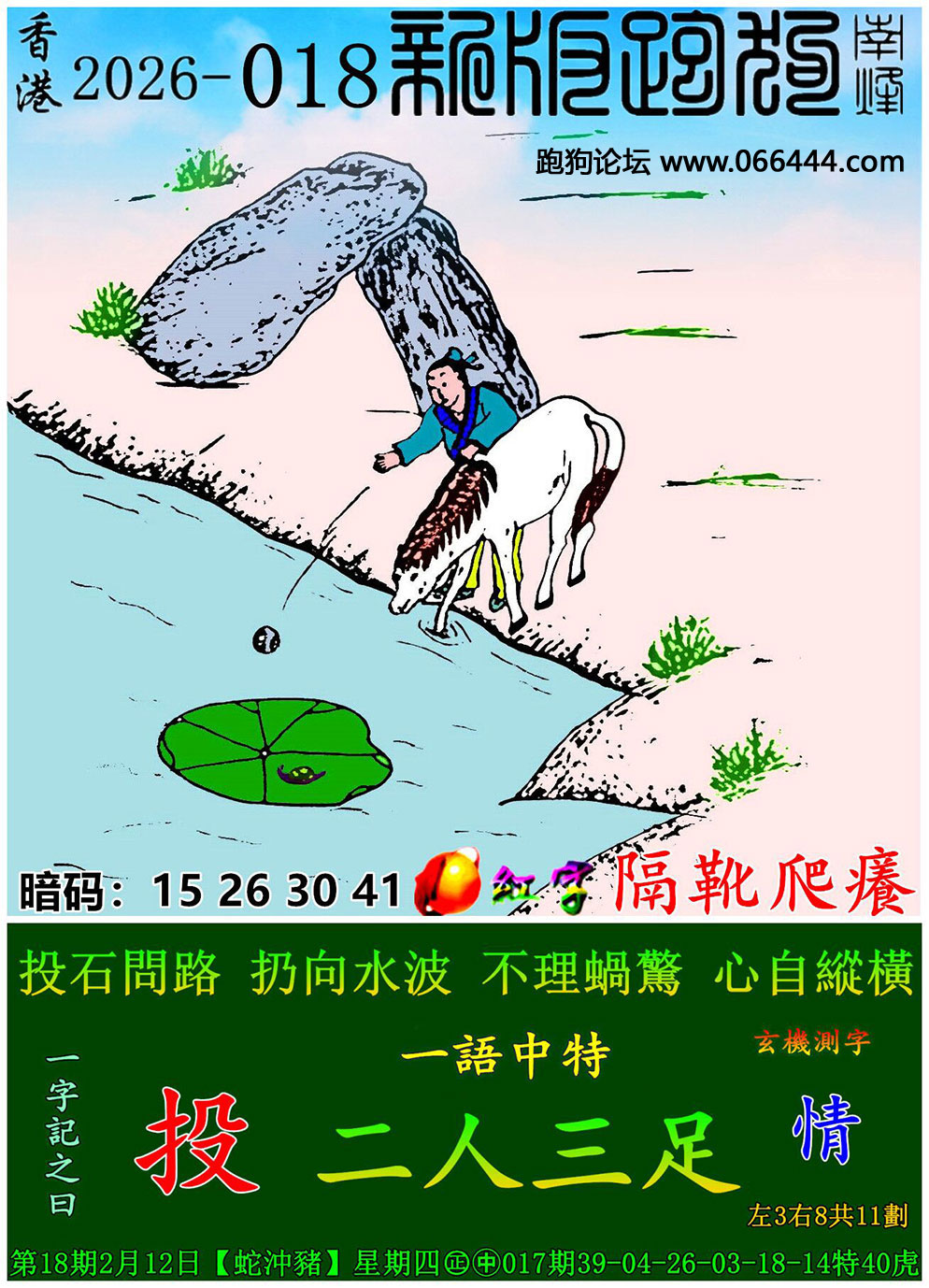 018期六合皇信箱红字【隔靴爬癢】《暗码:15 26 30 41》开