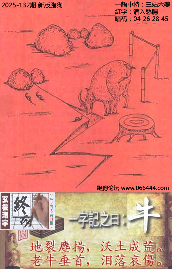 132期六合皇信箱红字【酒入愁腸】《暗码:04 26 28 45》开